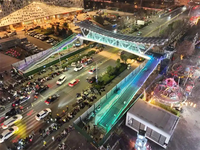 项目由济南城市建设集团负责建设,桥梁全长47.3米、桥面宽5.0米,项目如期通行有效破解了该区域长期存在的“人车混行”难题,更成为西客站片区慢行交通系统优化升级的重要一环。