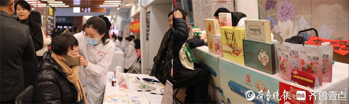助农展销区,富硒大米、沂蒙黑猪、南山跑山鸡、新鲜果蔬等优质农产品从田间地头直达市民“菜篮子”;中医服务区,济南医院、机关医院等名医坐诊,针灸、代茶饮、中药香囊传递“扁鹊故里”的康养智慧;非遗体验区,莲韵剪纸、尹氏结艺等黄河流域特色非遗集中亮相;健康养生区,阿胶、蜂蜜、益生菌等精品汇聚,倡导科学养生新风尚;企业展示区,各类优质品牌齐聚,彰显历下商业活力。